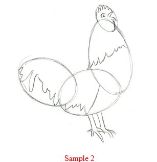 Now draw around the rooster in a darker tone and tweak it until you see fit and erase any unwanted lines.