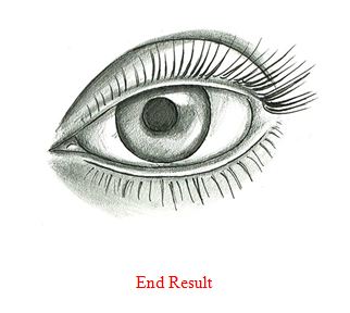 Now shade it in however you like. For realistic effect don’t forget to make a small part near the pupil white like below. You can achieve this by just using an eraser.